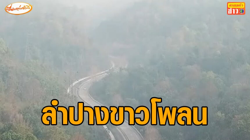 สถานการณ์หมอกควันไฟป่าในพื้นที่ลำปางกลับมาน่าห่วงอีกครั้ง หลังมีการใช้โดรนบินสำรวจภาพมุมสูงตลอดแนวถนนลำปาง–เชียงใหม่ ตั้งแต่เขตอำเภอเมืองลำปางยาวไปจนถึงบริเวณ อุทยานแห่งชาติดอยขุนตาล อ.ห้างฉัตร จ.ลำปาง ระยะทางกว่า 20 กิโลเมตร พบว่าพื้นที่ถูกปกคลุมด้วยหมอกควันสีขาวหนาทึบ มองเห็นได้ชัดเจนตลอดแนวถนน โดยเฉพาะบริเวณป้ายคัตเอาท์ “ยินดีต้อนรับสู่จังหวัดลำปาง” ถูกหมอกควันปกคลุมจนแทบมองไม่เห็น