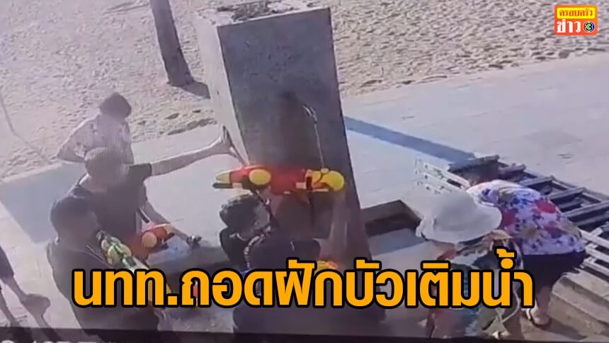 กุมขมับ! นักท่องเที่ยวเล่นน้ำที่พัทยา ถอดฝักบัวที่เอาไว้อาบน้ำล้างตัวริมชายหาดทิ้งสูญหาย แห่ต่อคิวเติมน้ำใส่ปืนเล่นสงกรานต์