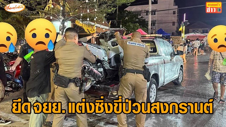 ตำรวจลาดพร้าวเข้ม ตรวจยึดรถจักรยานยนต์วัยรุ่นแต่งซิ่ง ดัดแปลงท่อไอเสีย ให้ส่งเสียงดังจนก่อความรำคาญ บนถนนซอยลาดพร้าว 101 ขณะเล่นสาดน้ำสงกรานต์