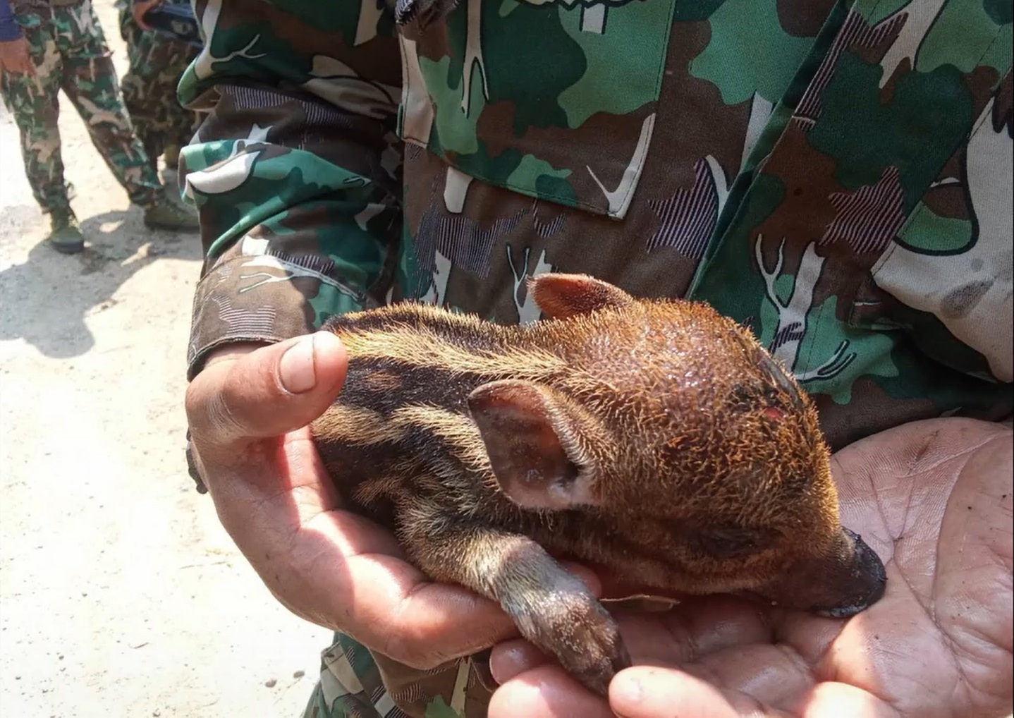 “ลูกหมูป่า” หนีตายไฟป่าเชียงใหม่ สุดสงสาร ถูกไฟคลอกสภาพอิดโรย พลัดหลงจากแม่