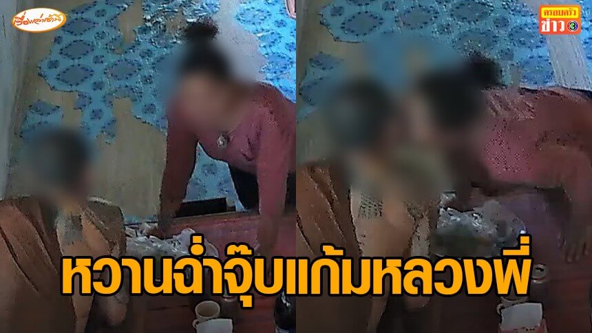 ผ้าเหลืองร้อน! มองซ้าย มองขวา แต่ลืมมองกล้อง สีกาจุ๊บแก้มหลวงพี่หวานฉ่ำกลางบ้าน น้องชายเดือดแฉคลิปประจาน รับไม่ได้จุดประทัดไล่ตะเพิด