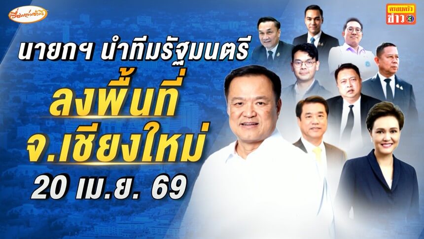 วันนี้ (20 เม.ย.69) 'อนุทิน' ยกทีมลงพื้นที่เชียงใหม่ - ฝุ่นยังอ่วม จับมือเผาคาป่า - ไฟป่าลาม ต้นไม้ล้มขวางรถกู้ชีพ
