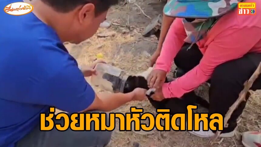 สุดสงสาร เจ้าตูบหัวติดโหลพลาสติก เจ้าหน้าที่เฝ้า 2 วันจนช่วยเหลือได้