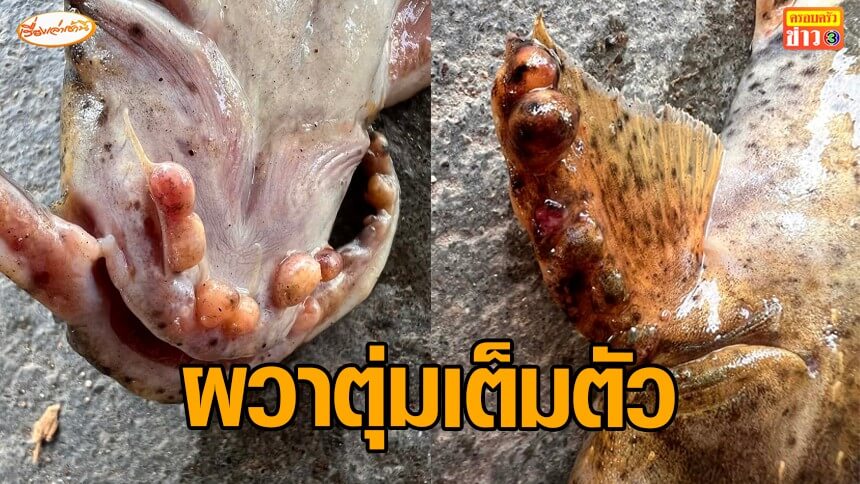 ผู้สื่อข่าวรายงานว่า เมื่อช่วงเช้าวันที่ 22 เม.ย.69 ชาวประมงอำเภอเชียงคาน จ.เลย พบปลาแข้ที่บริเวณดอนไข่ น้ำหนัก 100 กรัม ยาว 23 เซนติเมตร มีลักษณะผิดปกติ ตุ่มขึ้นเต็มตัว ไม่กล้านำไปขาย หรือนำไปรับประทาน เพราะเกรงว่าจะเกิดจากสารพิษอันตรายที่ติดมาในลำน้ำโขง