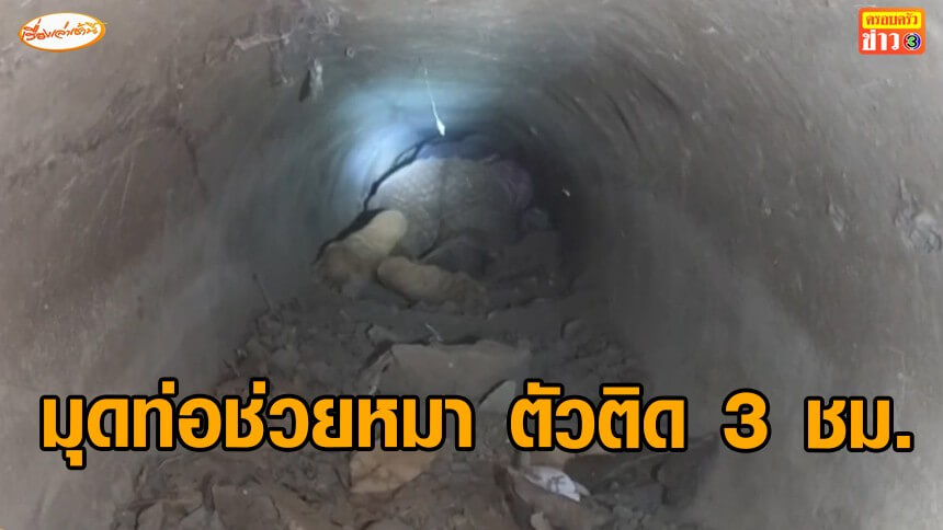 นาทีชีวิต! ยายวัย 81 ใจบุญ มุดท่อระบายน้ำช่วยหมาวัด จนตัวติดนาน 3 ชม. กู้ภัยเร่งเจาะปูนช่วยชีวิต