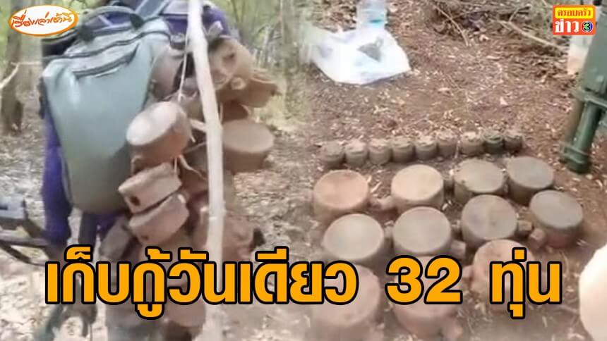 เก็บกู้ทุ่นระเบิดชายแดนบ้านหนองจาน วันเดียว 32 ทุ่น ร้อยกันเป็นพวง