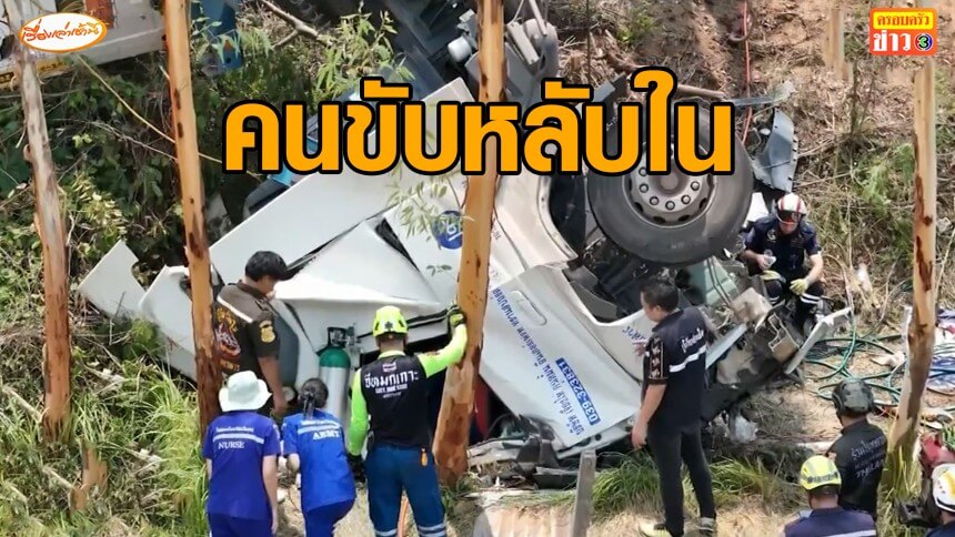 รถพ่วงขนทุเรียนเตรียมส่งจีน ชนกระบะ พลิกคว่ำขวางถนน คนขับสาหัส คาดหลับใน