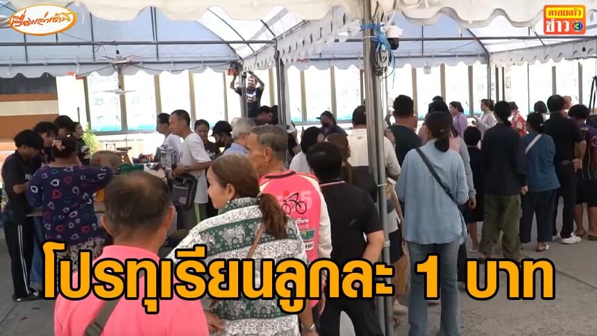 วันที่ 28 เมษายน 2569 ที่บริเวณหน้าสวนนกชัยนาท ต.เขาท่าพระ อ.เมือง จ.ชัยนาท ประชาชนจำนวนมากแห่เดินทางมาจับจ่ายซื้อทุเรียนอย่างเนืองแน่น หลังร้าน “เจ๊ดา ผลไม้ซิ่ง” จัดโปรโมชั่นพิเศษทุเรียนลูกละ 1 บาท จำกัดวันละ 200 สิทธิ์ พร้อมนำทุเรียนหลากหลายสายพันธุ์มาจำหน่ายในราคาถูกกว่าท้องตลาด โดยมีราคาเริ่มต้นที่สายพันธุ์นกกระจิบ กระดุม และชะนี กิโลกรัมละ 59 บาท หมอนทองจันทบุรี กิโลกรัมละ 79 บาท หมอนทองระยอง กิโลกรัมละ 99 บาท และแบบเนื้อล้วนแกะโชว์เพียงขีดละ 39 บาท สร้างความดีใจให้แก่ผู้ที่มาเลือกซื้อซึ่งต่างได้รับผลไม้กลับไปฝากลูกหลานในราคาประหยัด