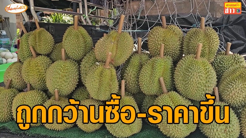 แม่ค้าขายทุเรียน จ.พิษณุโลก เผย หาหมอนทองจันทบุรี มาขายแทบไม่ได้ พบถูกกว้านซื้อ ส่งผลทำให้ราคาปรับเพิ่มสูงขึ้น ต้องนำเอาทุเรียนยังไม่สุกมาขายแทน และราคาตลาดเริ่มปรับขึ้น