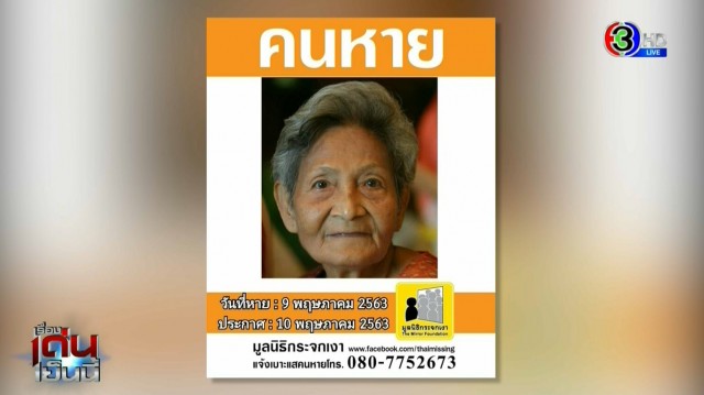 ยังไม่เจอ! 'ยายสมบุญ' สวมเสื้อคอกระเช้า ขึ้นแท็กซี่ ซ.บางนาตราด 37 หายตัวไป