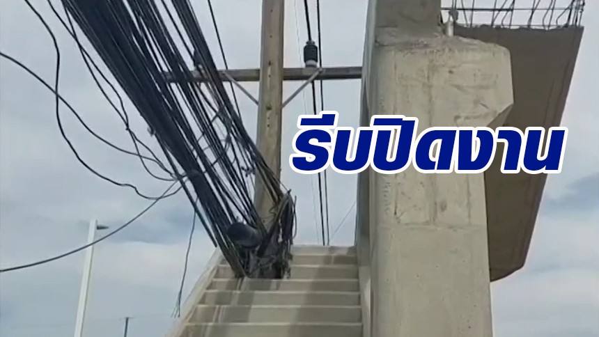 ไทยแลนด์โอนลี! เสาไฟทะลุสะพานลอย ที่ชลบุรี ผรม.สร้างทับเพราะรีบปิดงาน รองบจัดจ้างถอดถอนต่อไป