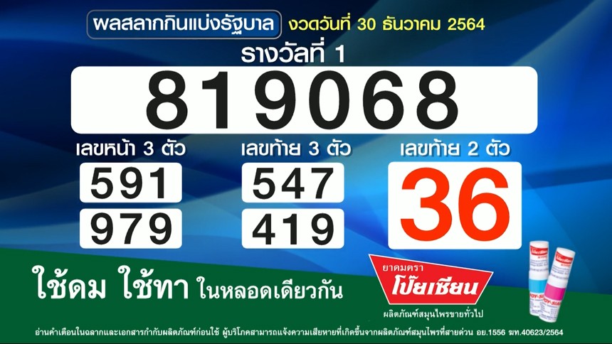 ผลสลากกินแบ่งรัฐบาล งวดวันที่ 30 ธันวาคม 2564