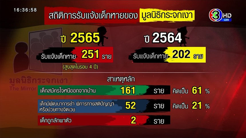แท็กที่เกี่ยวข้อง มูลนิธิกระจกเงา ,สถิติเด็กหายปี2565