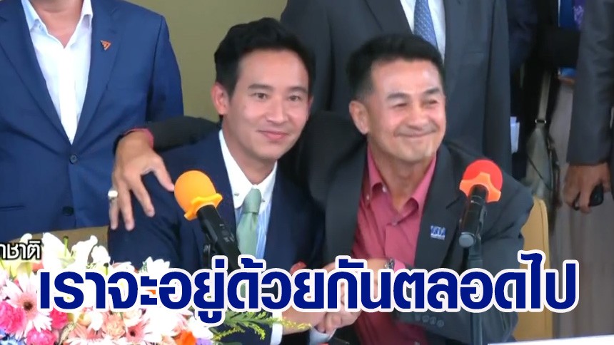 'หมอชลน่าน' โชว์หวานกอด 'พิธา' กลางวงแถลง ย้ำ "ไม่ว่าอะไรจะเกิดขึ้น เราจะอยู่ด้วยกันตลอดไป"