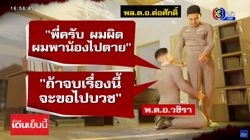 บิ๊กต่อ รองผู้บัญชาการตำรวจแห่งชาติ ว่า ผู้กำกับเบิ้มเสียใจมาก ในวันที่ "สารวัตรศิว" โดนยิง ถึงขั้นมาเกาะขาร้องไห้ บอกเสียใจที่พาน้องไปตาย และขอบวชเพื่อแสดงความรับผิดชอบ