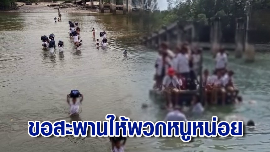 เพจดังโพสต์ นร.สุดลำบาก ว่ายน้ำมอมแมมไปรร. วอนขอสะพานข้าม