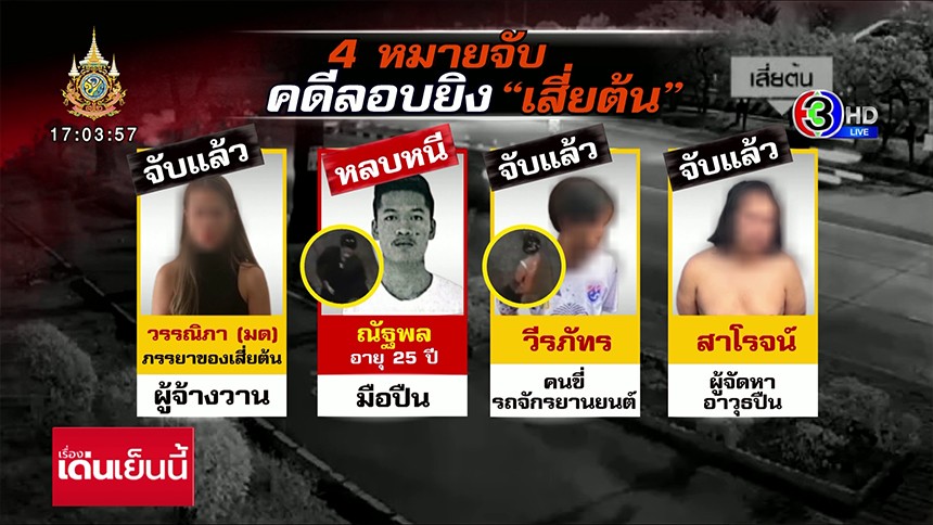 ตร. เร่งล่า 'ณัฐพล' 1 ใน 4 มือปืนลอบยิง 'เสี่ยต้น' หลังถูกออกหมายจับ
