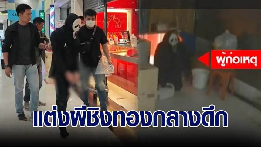 โจรแต่งผี แอบห้องน้ำห้าง โผล่ชิงทองกลางดึก สุดท้ายถูกขังในร้าน เช้ามาถูกจับ ไม่ได้ทองสักเส้น