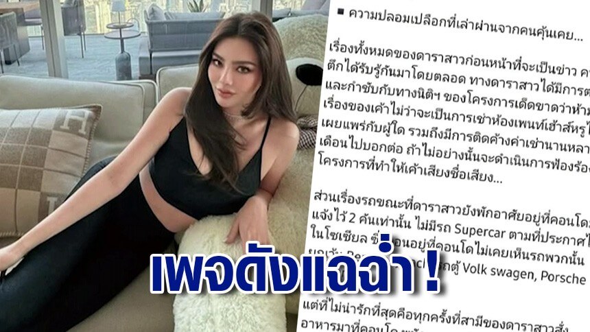 คนทั้งตึกได้รับรู้กันมาโดยตลอด ทางดาราสาวได้มีการตกลงและกำชับกับทางนิติฯ ของโครงการเด็ดขาดว่าห้ามนำเรื่องของเขา ไม่ว่าจะเป็นการเช่าห้องเพนท์เฮ้าส์หรู รวมถึงมีการติดค้างค่าเช่านานหลายเดือน ไปบอกต่อหรือเผยแพร่แก่ผู้ใด ถ้าไม่อย่างนั้นจะดำเนินการฟ้องร้องกับโครงการที่ทำให้เขาเสียงชื่อเสียง