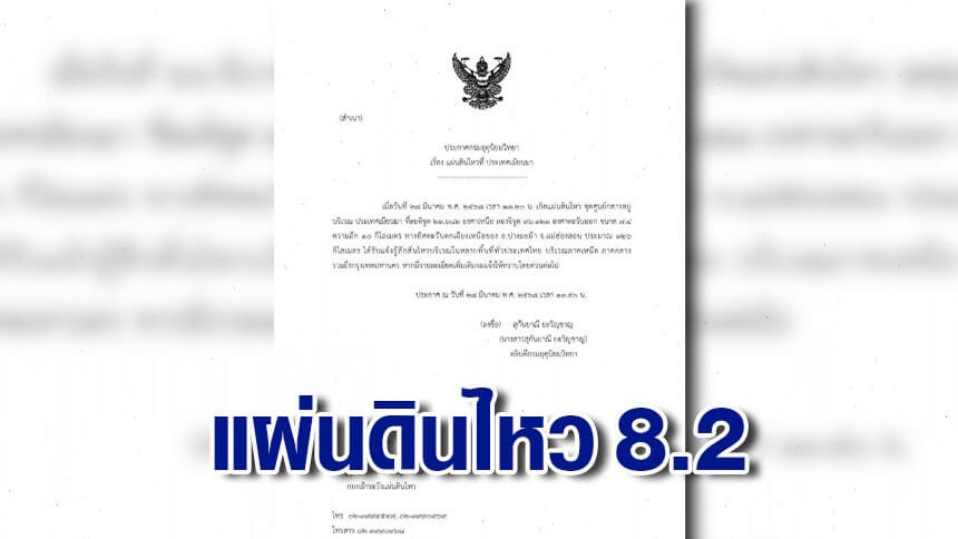 กรมอุตุนิยมวิทยา รายงานเหตุ 'แผ่นดินไหว' ขนาด 8.2 เกิดอาฟเตอร์ช็อกต่อเนื่องถึง 10 ครั้ง