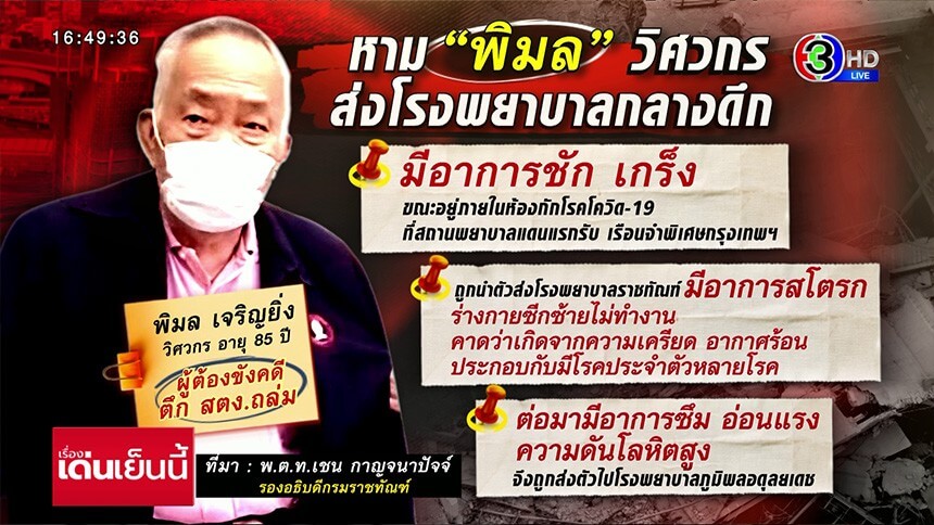 หามส่ง รพ.ด่วน! "พิมล" ผตห.คดี สตง.ถล่ม หลังเป็นสโตรก "เปรมชัย" เข้าด้วย มีอาการทางเดินหายใจ