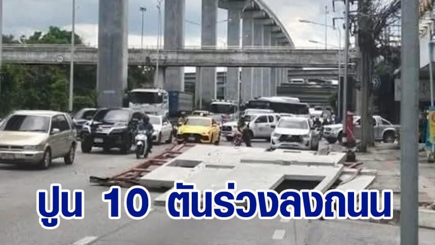 ระทึก! รถสิบล้อทำแผ่นปูนหนัก 10 ตัน ร่วงกลางถนนรามอินทรา หวิดทับรถ