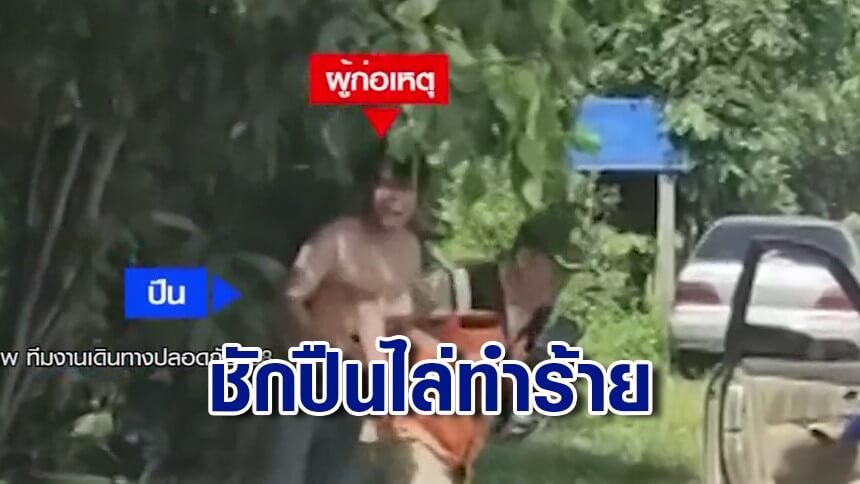 จ่อออกหมายจับ หนุ่มเมากร่าง ชักปืนไล่ตบ ชรบ. ชาวบ้านเข้าห้ามโดนตีหัวแตก