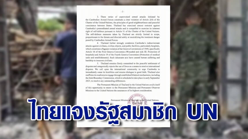 เปิดหนังสือ "ไทย" แจงรัฐสมาชิก UN เหตุปะทะ "กัมพูชา" ยันไทยต้องการสันติ