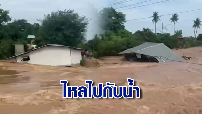 สุโขทัยอ่วม แม่น้ำยมทะลักจนคันกั้นน้ำแตก ทำมวลน้ำหลากซัดบ้านพังลอยไปกับน้ำ