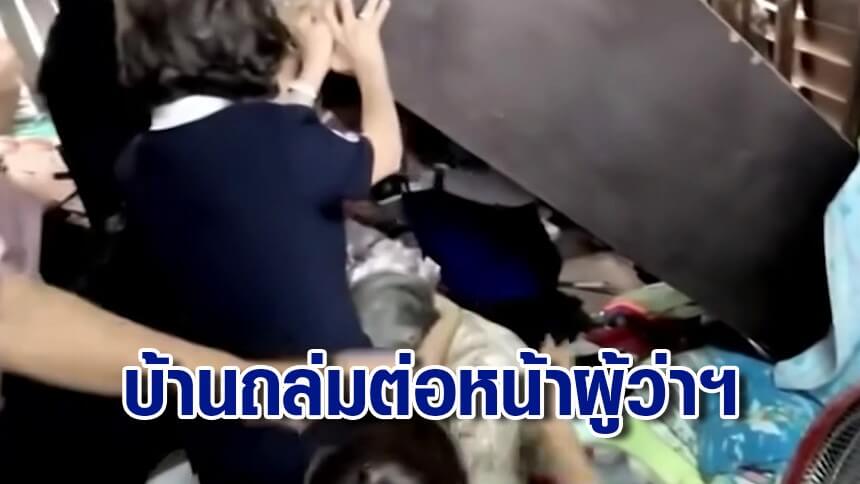 ระทึก! บ้านยายวัย 85 ถล่มต่อหน้าผู้ว่าฯชลบุรี ตู้ล้มหวิดถูกทับ หลังรับปากซ่อมให้ไม่ทันขาดคำ