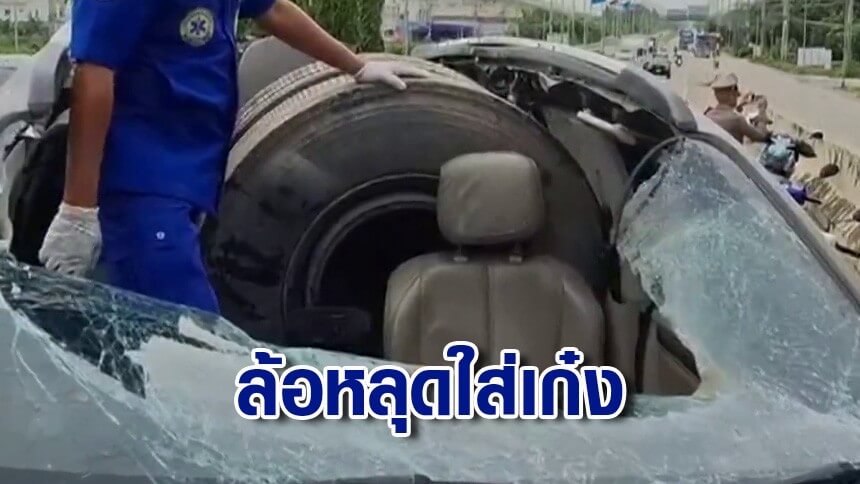 สยอง! บุรุษพยาบาลหวิดดับขณะขับรถไปทำงาน เจอล้อรถบรรทุกหลุดมากระแทกหลังคารถ จนเจ้าตัวบาดเจ็บสาหัส ตำรวจเร่งล่าหารถบรรทุกคันก่อเหตุ