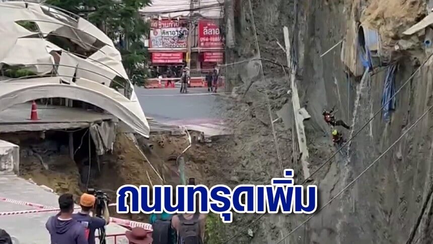จุดที่ทรุดเพิ่มคือ ถนนที่เคยเป็นจุดที่มีรถกระบะของการรถไฟฟ้าขนส่งมวลชนแห่งประเทศไทย หรือ รฟม. จอดค้างอยู่ ดินด้านล่างสไลด์ลงไป ทำให้ตัวพื้นถนนด้านบนทรุดลงไปด้วย แต่โชคดีที่เจ้าหน้าที่ได้ใช้รถเครนเคลื่อนย้ายรถออกไปแล้ว