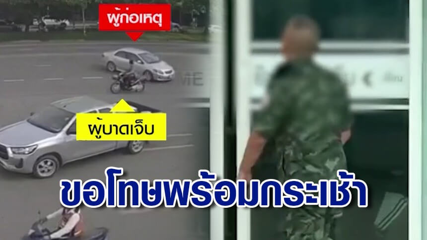 เปิดคลิปเหตุการณ์ก่อนเก๋งพุ่งชนจยย.พบมีเรื่องกันก่อนหน้า ล่าสุด "พันโท" กร่าง นำกระเช้าขอโทษแล้ว