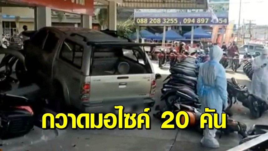 ชายวัย 64 วูบคาพวงมาลัย ขับกระบะพุ่งเข้าร้าน กวาด จยย.20 คัน สุดท้ายคนขับเสียชีวิต