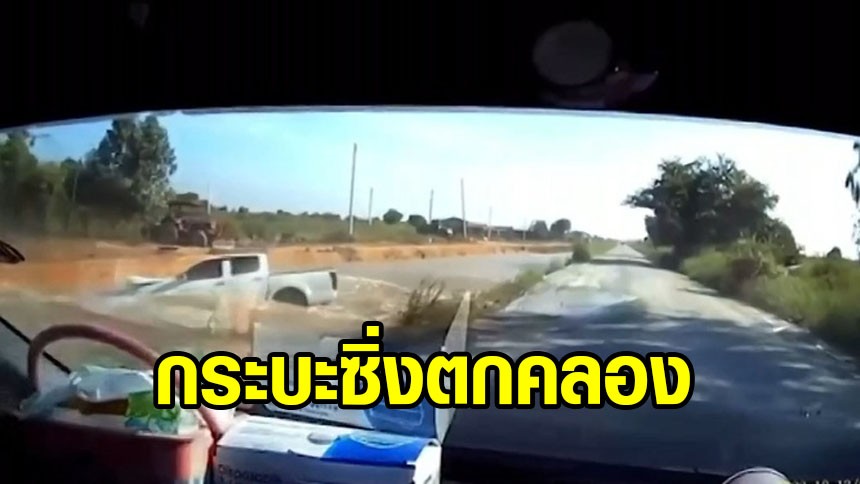 ฟาสต์ 10 หลบไป! กระบะซิ่งแรงเร็วกว่านรก แซงทางแคบ สุดท้ายเสียหลักพุ่งลงคลอง