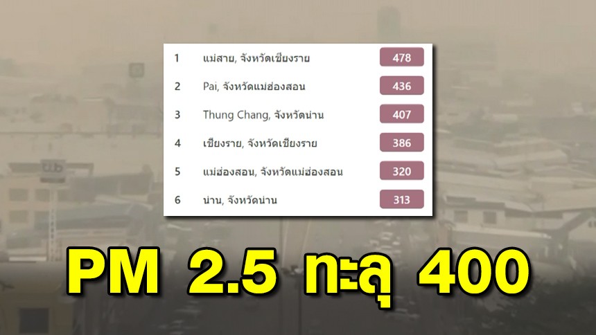 PM 2.5 ภาคเหนืออ่วม หลายจังหวัดทะลุ 400 แม่สายฝุ่นคลุมเมือง บ้านมี 20 เครื่องฟอกอากาศ ยังสู้ไม่ไหว