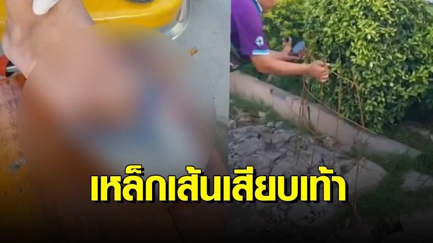หนุ่มโรงงานขี่ จยย.จะกลับบ้าน ถูกตะแกรงเหล็กเส้นทำถนนเสียบเท้า บาดเจ็บ