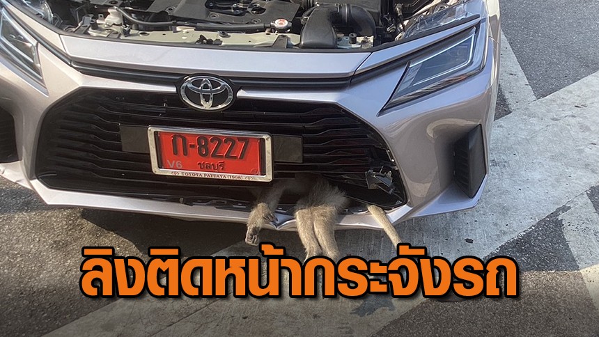 มายังไงก่อน? น่าเวทนา ลิงติดแหงก อยู่หน้ากระจังรถเก๋ง