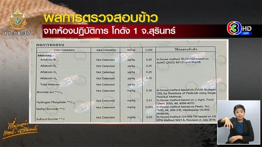 เผยผลทดสอบข้าว 10 ปี ‘ข่าว 3 มิติ’ ส่งตรวจห้องแล็บ ไม่พบสารพิษทั้ง 2 โกดัง