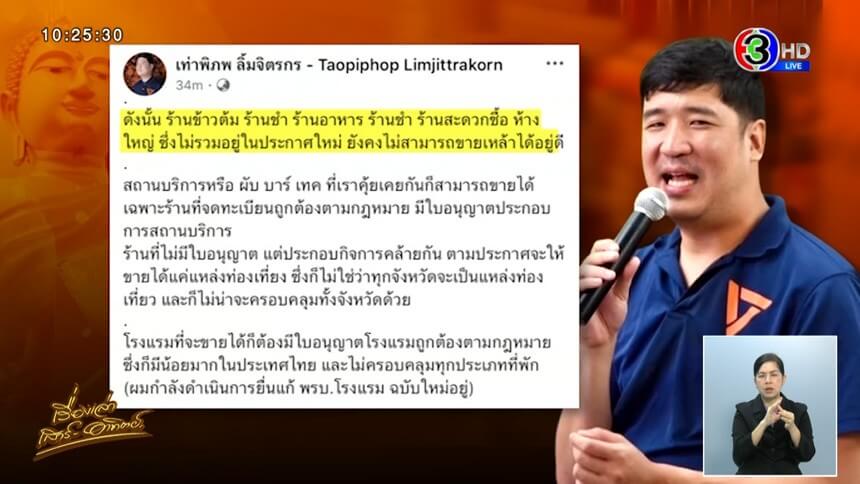 อย่ารีบดีใจ! ‘เท่าพิภพ’ ยันประกาศฉบับใหม่ ยังไม่เลิกห้ามขายเหล้าวันพระใหญ่ ชี้ขายได้แค่บางสถานที่
