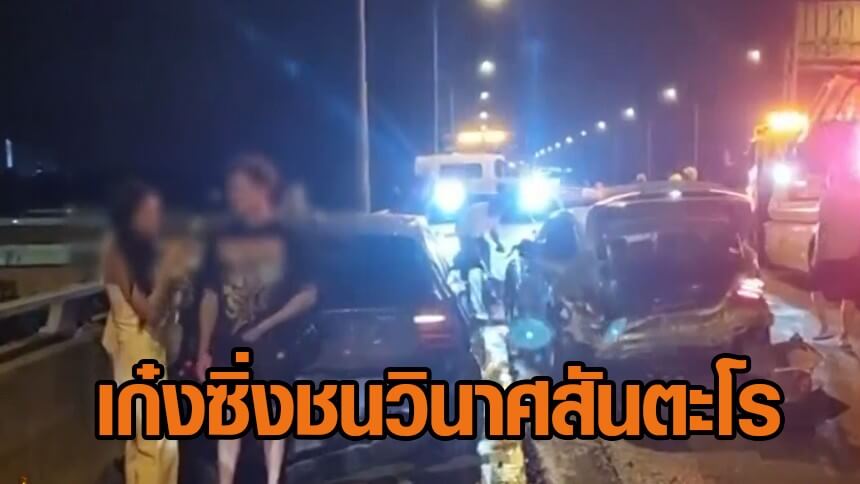 วินาศสันตะโร! เปิดนาทีเก๋งพุ่งชนกัน 10 คันรวดบนทางด่วน คาดเป็นแก๊งแต่งซิ่งแข่งรถ