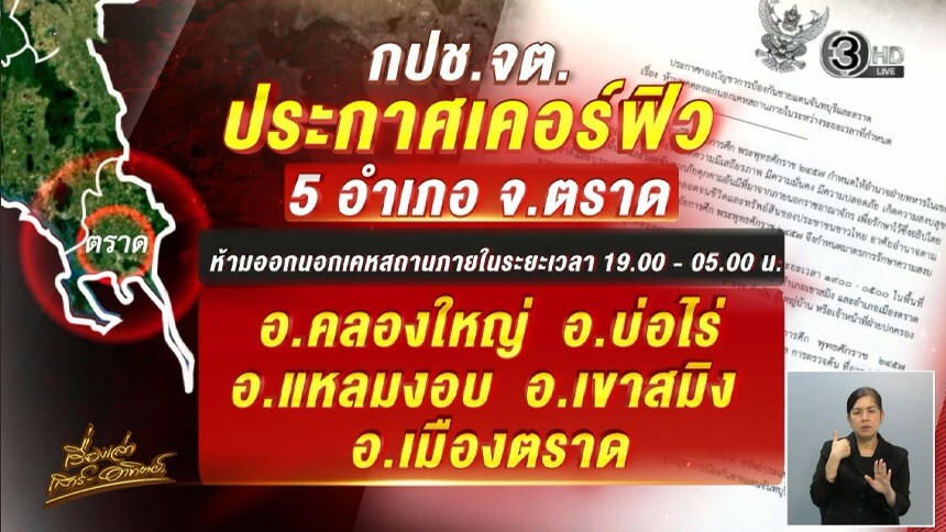 แนวรบตราดเดือด เสียงปืนสนั่น ปักธงชาติไทยพื้นที่บ้าน 3 หลัง - ประกาศเคอร์ฟิว 5 อำเภอ จ.ตราด