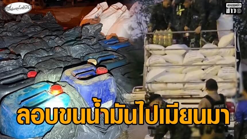 รวบชายไทย ซุกน้ำมัน 1,260 ลิตร ท้ายกระบะขนน้ำแข็ง เตรียมข้ามแดนขายเมียนมา