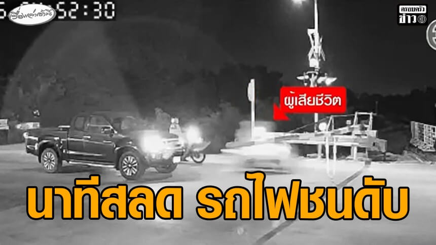 วงจรปิดจับนาทีสลด จยย.พุ่งชนไม้กั้น คนกระเด็นนอนบนรางรถไฟ ถูกทับเสียชีวิต