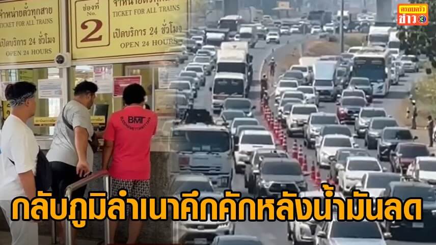 สถานีรถไฟคึกคัก ประชาชนหันมาเดินทางด้วยรถไฟแทนรถยนต์ หลังราคาน้ำมันแพง ขณะที่หลายคนเปลี่ยนใจเดินทางช่วงกลับบ้านช่วงสงกรานต์ หลังน้ำมันลดแรง ดีเซลลด 4-6 บาท ทำให้ถนนสายหลัก อาทิ ถนนมิตรภาพ ถนนสายเอเชีย มีปริมาณรถมาก การจราจรหนาแน่น