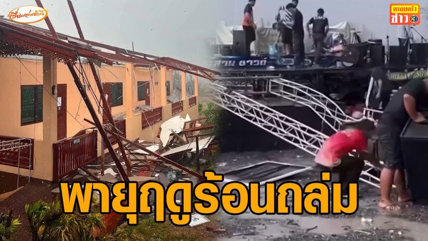 พายุฤดูร้อนถล่มหลายจังหวัด! ลูกเห็บตก ลมกรรโชกแรง พัดหลังคา-เต็นท์ปลิวว่อน ชาวบ้านหนีตายวุ่น