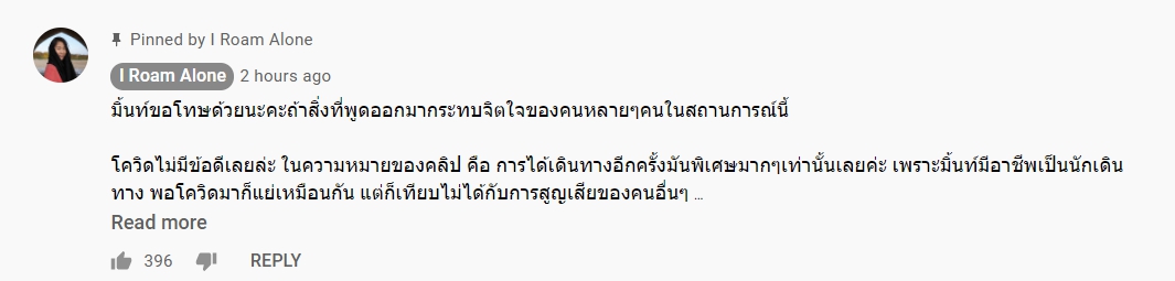 -เป็นการพูดแบบพยายามสร้างคอนเทนต์เท่านั้น พยายามแทรกข้อคิดระหว่างการท่องเที่ยวเหมือนไลฟ์โค้ช อีกทั้งยังบอกว่า คนที่เคยมีประเด็นตัดต่อคลิปคนอื่น ไม่ควรมีพื้นที่ในสังคม (ก่อนหน้านี้ มิ้นท์เคยเอาคลิปสารคดีซ่องโสเภณีที่บังกลาเทศของ 'กรุณา บัวคำศรี' มาใช้โดยไม่ได้รับอนุญาต)