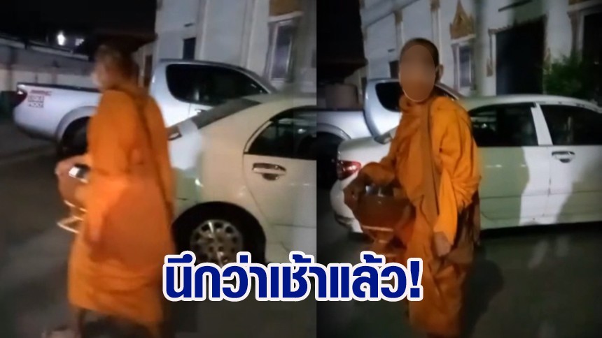 เขินเลยหนึ่ง! หลวงลุงสะดุ้งตื่นออกบิณฑบาต 3 ทุ่ม เจอเด็กวัดทักรีบกลับหลังหันเข้ากุฎิอย่างเร็ว