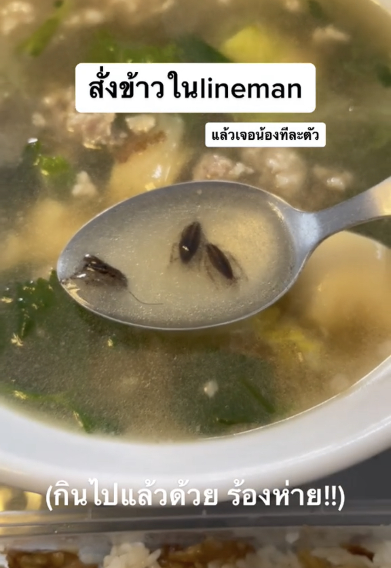 อ้วกแทบพุ่ง! ลูกค้าสุดช็อก สั่งอาหารมากินผ่านแอปฯ กลับเจอแมลงปริศนาปนมาด้วย