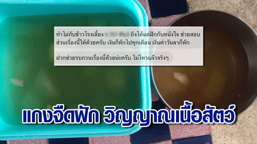 กลายเป็นประเด็นที่พูดถึงในโลกออนไลน์ หลังจากที่เฟซบุ๊กเพจ อยากดังเดี๋ยวจัดให้ รีเทริน์ part 6 ได้เผยภาพข้อความของผู้ร้องเรียนรายหนึ่ง ส่งข้อความมาช่วยเหลือ ระบุว่า “ทำไมกับข้าวโรงเลี้ยง ร... พัน... ถึงได้แต่ฟักกับหนังไก่ ช่วยสอบสวนเรื่องนี้ให้ด้วยครับ เงินก็หักไปทุกเดือน เงินค่าวันลาก็หัก ฝากช่วยรบกวนเรื่องนี้ด้วยนะครับ ไม่ไหวแล้วจริงๆ” จากภาพที่ส่งมาคือเมนูแกงจืดฟัก แต่ไร้วิญญาณเนื้อสัตว์